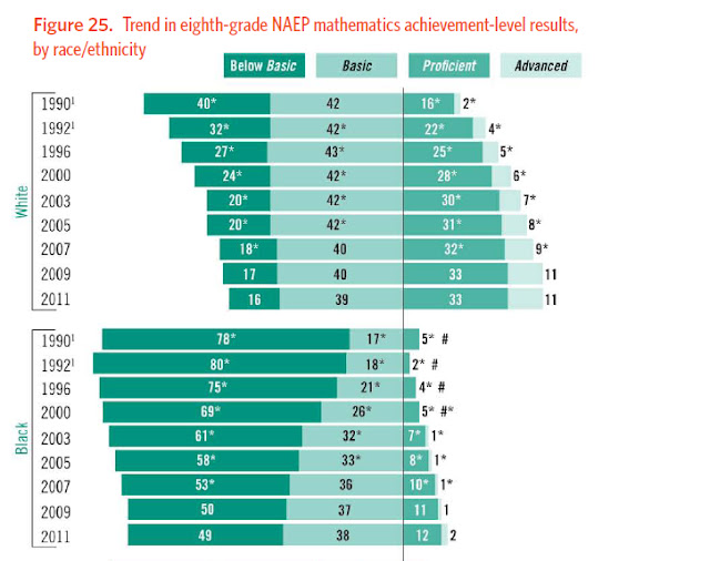 ...and Blacks still have higher rates of illegitimacy, criminality, and disease and lower levels of wealth than white Americans.  Now, via standardized testing, we also know that they lag far behind in the classroom.