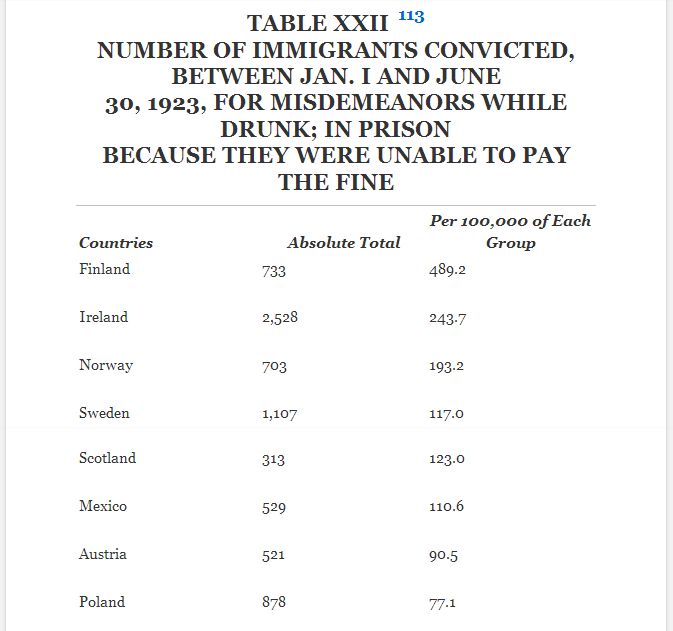 The Prohibition movement was strongly interwoven with distrust of Catholic and Jewish immigrants. Alcohol-related crime was an intense preoccupation for many 19th century Protestant Americans. Here are some statistics; we note the place of Mediterraneans on this list: