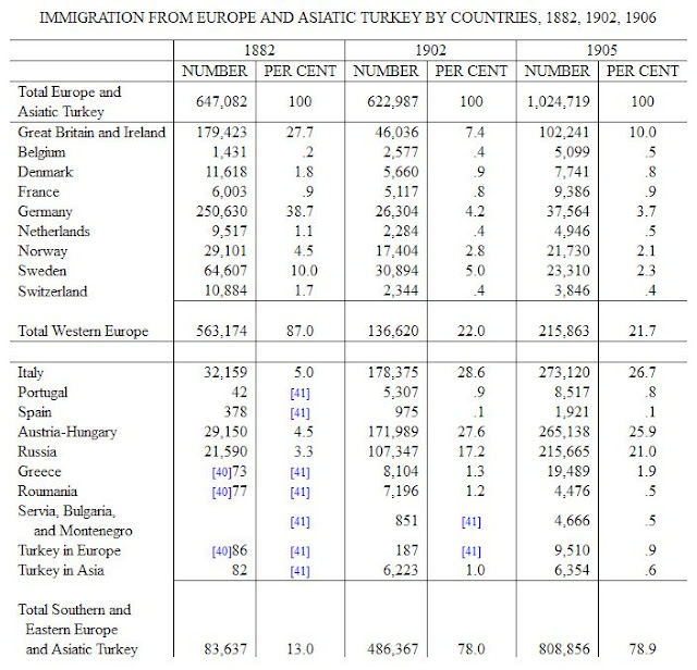 ...Latin, Slav, Semitic, and Mongolian races. When the sources of American immigration are shifted from the Western countries so nearly allied to our own, to Eastern countries so remote in the main attributes of Western civilization, the change is one that should challenge the attention of every citizen.