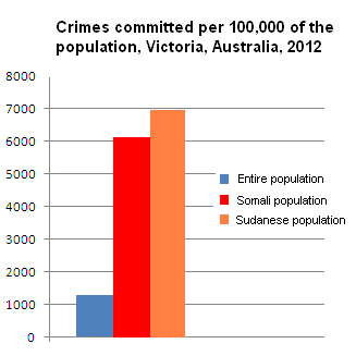 The most common crimes committed by Somali and Sudanese-born Victorians are assault and robbery, illustrating the trend towards increasingly violent robberies by disaffected African youths.