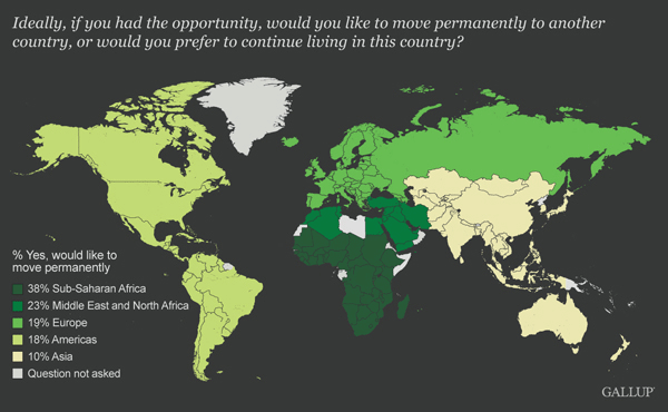 One final way to measure the strength of a country's economy is how many of its citizens would prefer to live elsewhere. In S.S. Africa's case, in a kind of reverse colonialism, millions would like to once again be ruled by Northern Europeans: