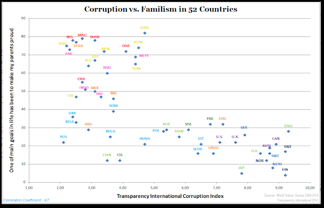 He cites Argentine Mariano Grondona, who claims familism can chip away at 'the lesser virtues,' or
